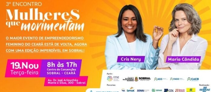 cidade de Sobral, na região Norte do estado, recebe na próxima terça-feira (19) a terceira edição do Mulheres que Movimentam, maior evento de empreendedorismo feminino do Ceará. O encontro visa promover oportunidades de capacitação, orientação, prestação de serviços e conexões para atuais ou futuras empreendedoras, empresárias e líderes de negócios de pequeno porte, além de contribuir para o empoderamento feminino.
